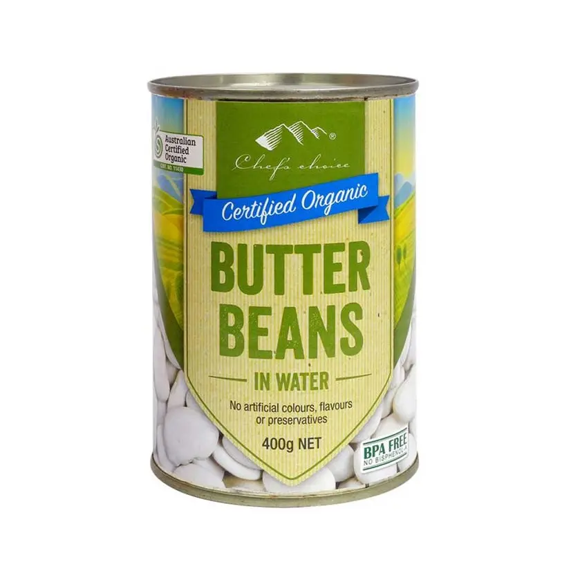 Certified Organic Butter Beans, and Water.