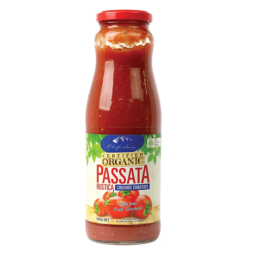 Chef’s Choice Certified Organic Passata Rustica is a superior tomato base made from the highest quality organic tomatoes and basil, hand picked and ripened under the beautiful Italian sun. The tomatoes are skinned, crushed and sieved to remove the seeds, leaving only the most succulent parts of the tomato. Passata is the key ingredient in many pasta sauces, and also makes an excellent base for pizzas, curries and soups.