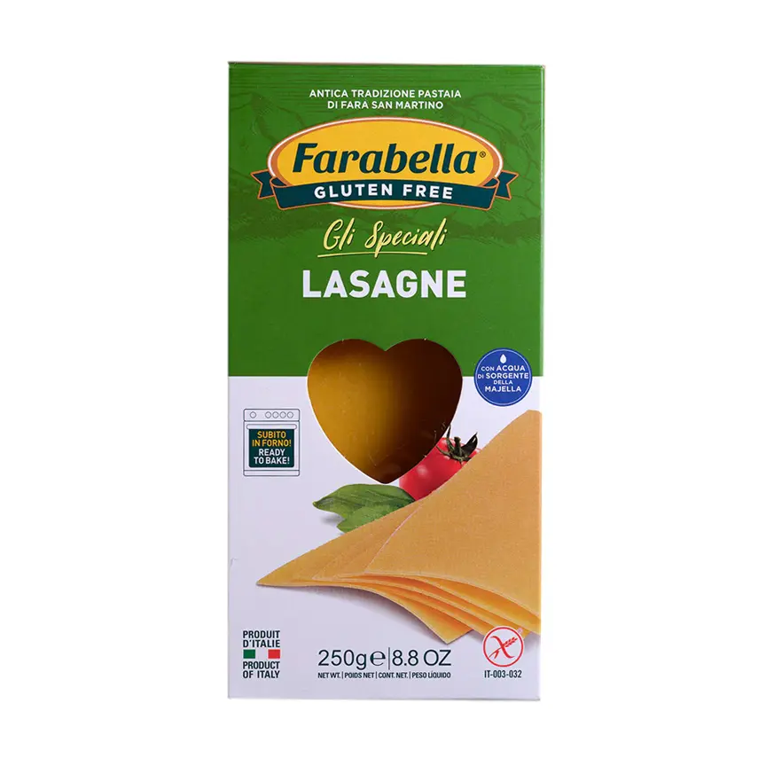 Farabella gluten-free lasagne offers a unique experience for your palate and will easily win you over! Made with the best corn and rice flours, naturally gluten-free, they don't need pre-cooking and are ready to be seasoned and baked.
