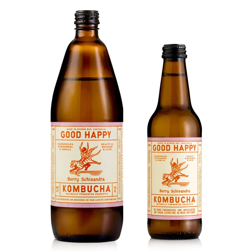 A naturally fermented probiotic kombucha with real berry goodness. No added preservatives. Raw. Unpasteurised. Vegan. Gluten Free.