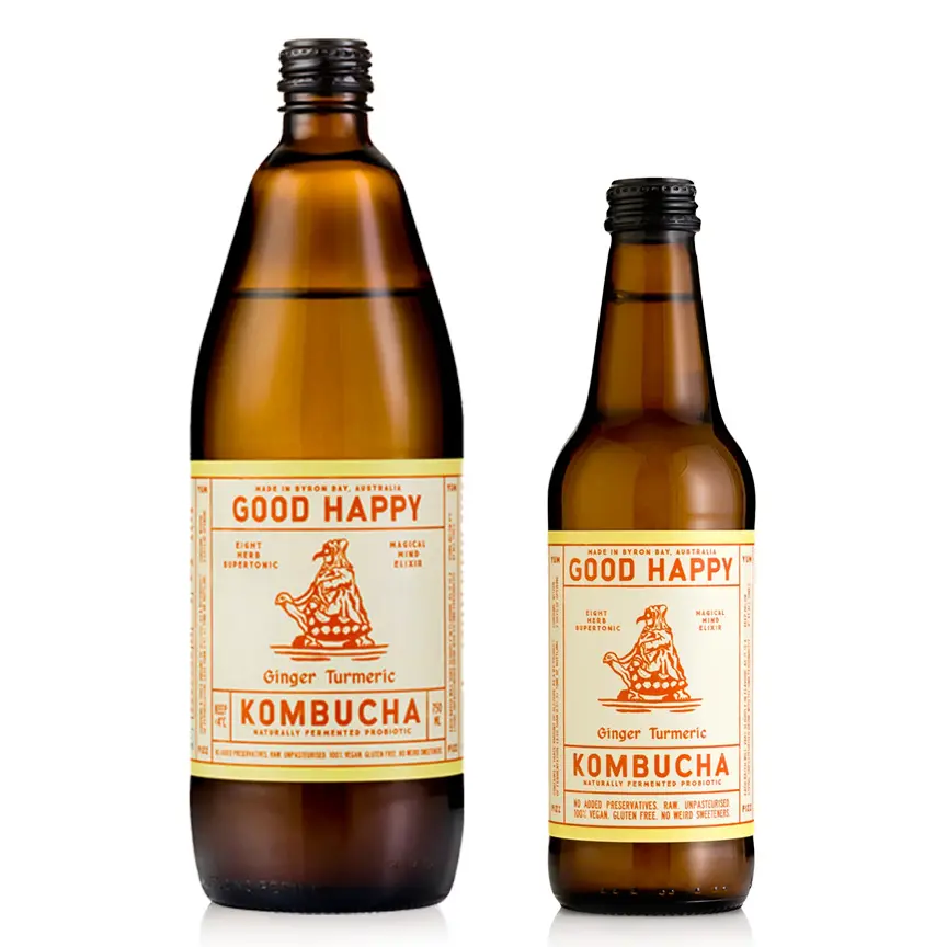 A naturally fermented probiotic kombucha with fresh organic turmeric, ginger and Lion's Mane. No added preservatives. Raw. Unpasteurised. Vegan. Gluten Free.