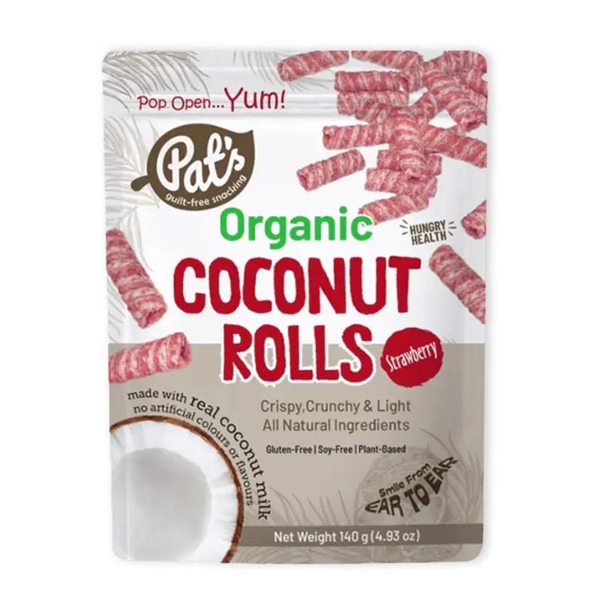 Pat's Organic Coconut Rolls are a light and crispy snack made with real organic coconut milk. While offering you a unique crispy texture, this vegan-friendly snack is rolled using a traditional method avoiding extrusion techniques to preserve the goodness and nutrition for you. Munch on these Coconut Rolls as a crunchy snack, sprinkle them as a flaky topping or dip them in your morning cup of tea or coffee.