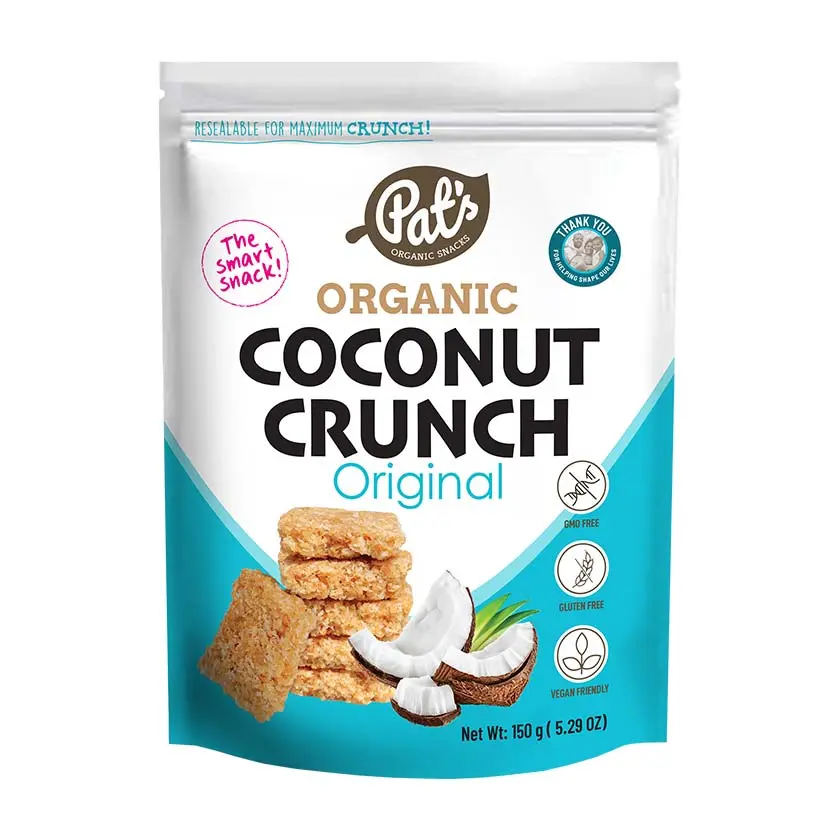 Each little crunch is packed with a deliciously sweet coconut flavour that only leaves you wanting more. Made from only the finest organic ingredients, Pat's Organic Coconut Crunch - Original, is the perfect snack to enjoy by itself or with your cereal bowls and desserts.