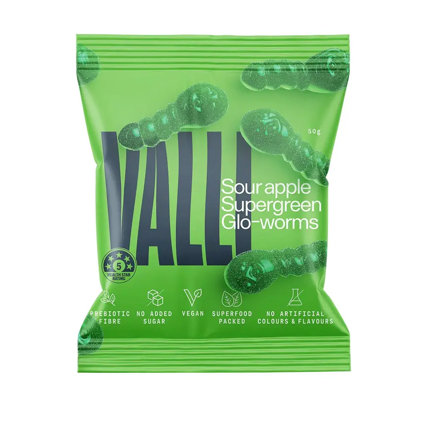 You know what they say: an apple a day.... Supercharged with goodness, the Supergreen Glo-worm is a vibrant blend of spirulina, broccoli, spinach, wheat grass and more that will have you glowing from the inside out.